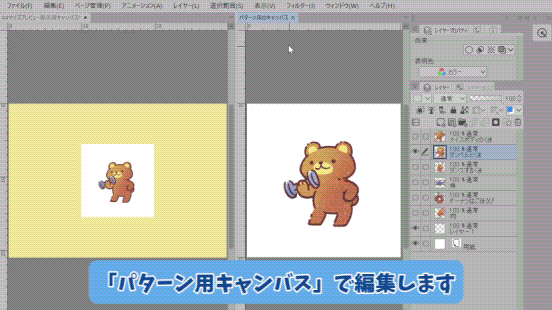 Lorsque vous modifiez une illustration sur la « Toile de motif », vous l'enregistrez et vérifiez le design sur la « Toile de prévisualisation » à chaque fois pour le finaliser.