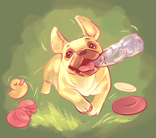 Dans ce dessin, je voulais capturer l'excitation du bouledogue de posséder la bouteille en plastique, et les étincelles dans ses yeux.