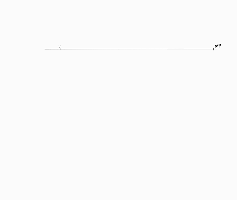 3. VP (Vanishing Point, point de fuite) (également appelé « point d'extinction »), (mais j'ai l'habitude de le marquer directement V)