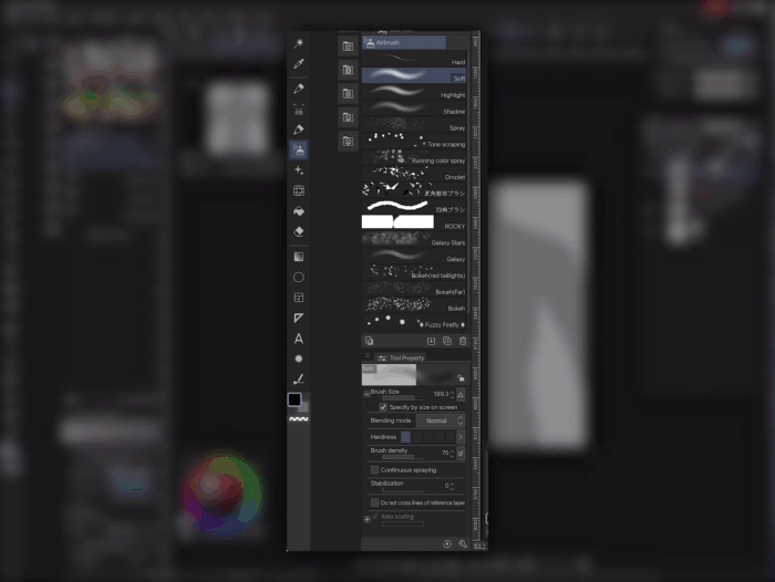 Le premier est l'aérographe doux par défaut que vous pouvez trouver dans votre catalogue. Il a été légèrement modifié, mais vous pouvez le garder tel quel. La seule chose que vous ferez vraiment avec est de modifier sa dureté pour modeler les parties plus douces et plus rugueuses des muscles. Alternez-la constamment entre tous les niveaux pour une apparence plus complexe de votre travail au pinceau.