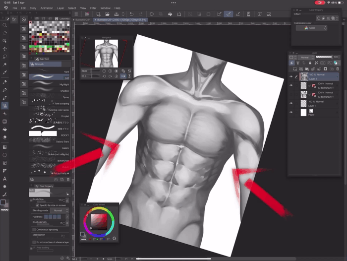 Hé-hé ! Je suis l'artiste AloneFlaver, et voici mon guide pour le concours Astuces du Mois de Clip Studio Paint ! Cette fois, j'aimerais vous expliquer comment je dessine les muscles dans Clip Studio. Les corps masculins, pour être plus précis. Pour ce guide, j'utiliserai la version iPad du programme. J'ai également préparé une version vidéo du tutoriel qui présente commodément l'ensemble du processus.