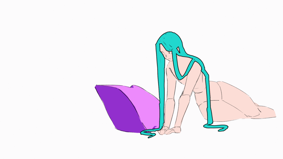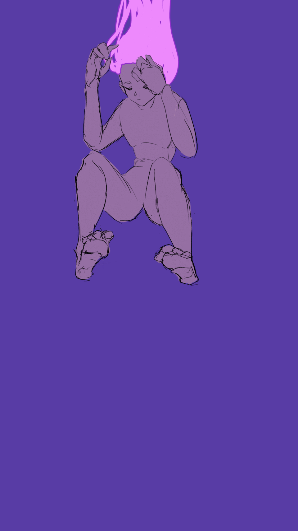 Après avoir dessiné les cheveux en suivant les mouvements du corps image par image, voici l'animation brute.