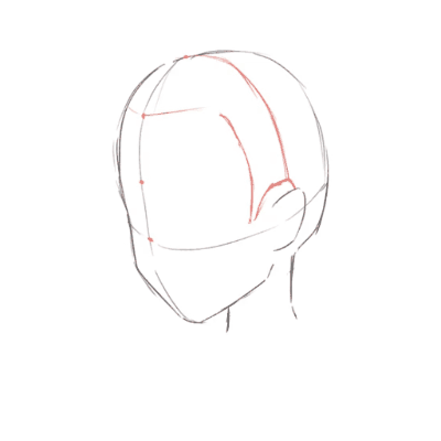 1. Reliez le centre des 2 oreilles, il y a le sommet de la tête\n2. Du niveau des yeux au sommet, divisez en 3 parties\n3. La ligne des cheveux est au 1er 1\/3 du haut\nUtilisez un stylo de mappage et l'effet de bordure de la section ci-dessus pour bloquer la forme des cheveux.\nLe torse descend, les cheveux s'étirent vers le haut