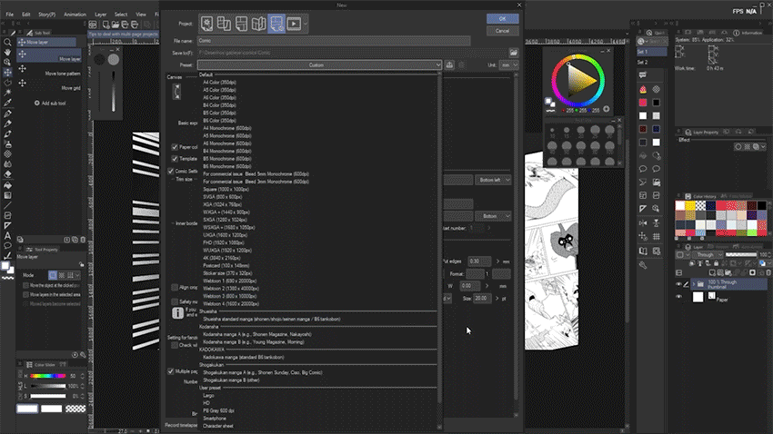 Je vous recommande de faire quelques recherches pour savoir quel préréglage convient le mieux comme point de départ pour le type de bande dessinée que vous souhaitez créer.