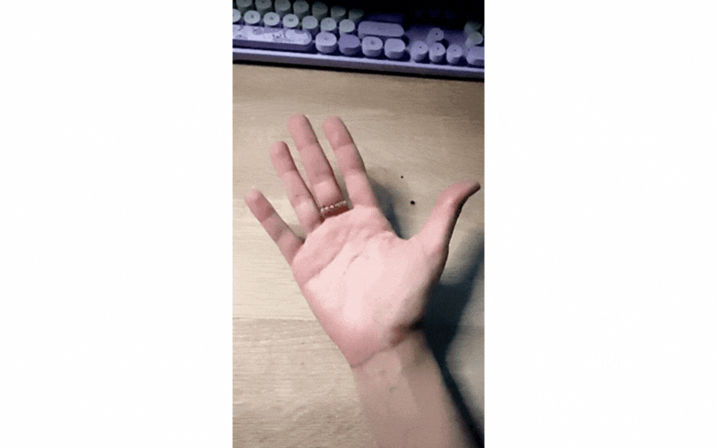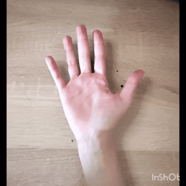 Dans mon exemple, on peut voir que la distance entre le poignet et le début des doigts est légèrement plus longue que celle du doigt le plus long (le majeur).