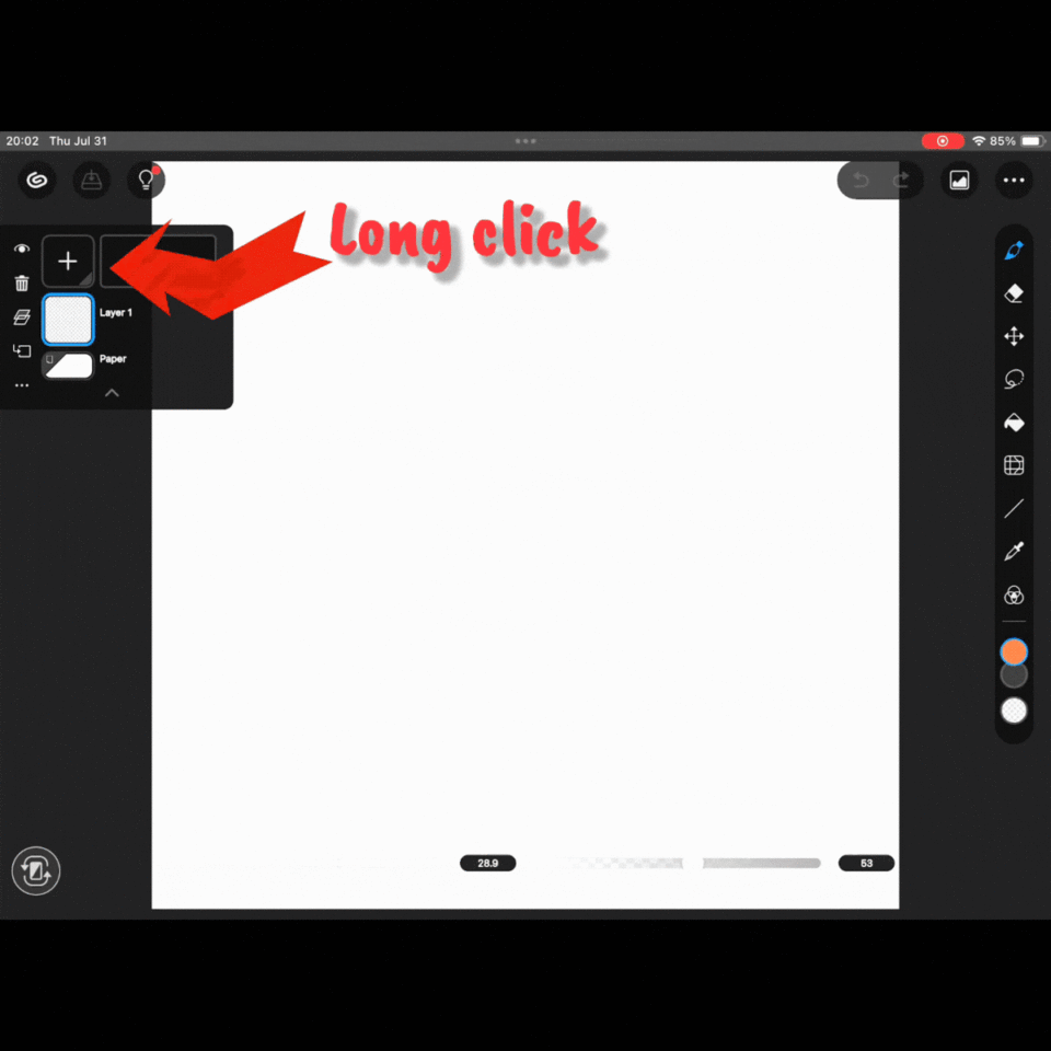1. Cliquez et maintenez quelques secondes sur le bouton Ajouter un calque