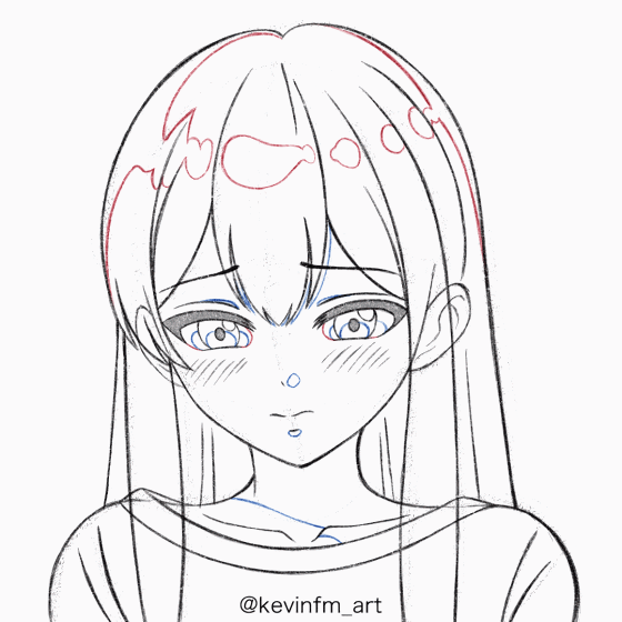 La première expression que nous réaliserons est l'expression de tristesse de la fille, pour cela, nous utiliserons comme guide l'expression précédemment créée.
