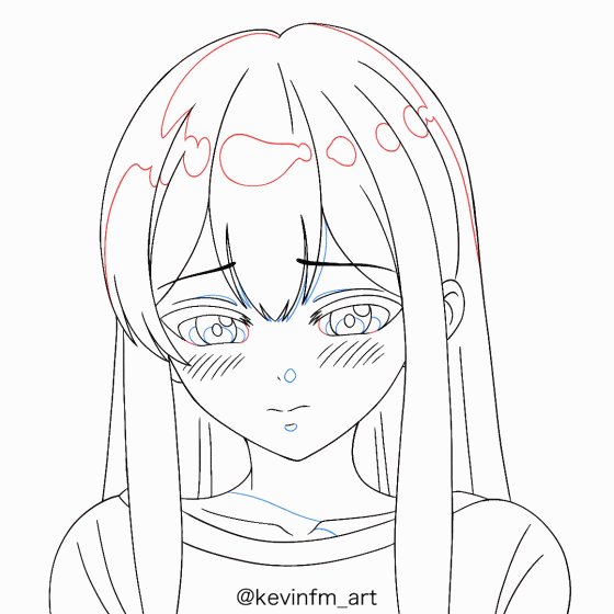 Ensuite, je vais créer différents calques pour créer le contour de la fille, en plus de créer des lignes pour les ombres et les lumières.