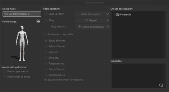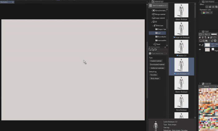 Nous allons créer un nouveau matériau à partir de l'un des corps 3D fournis par Clip Studio.