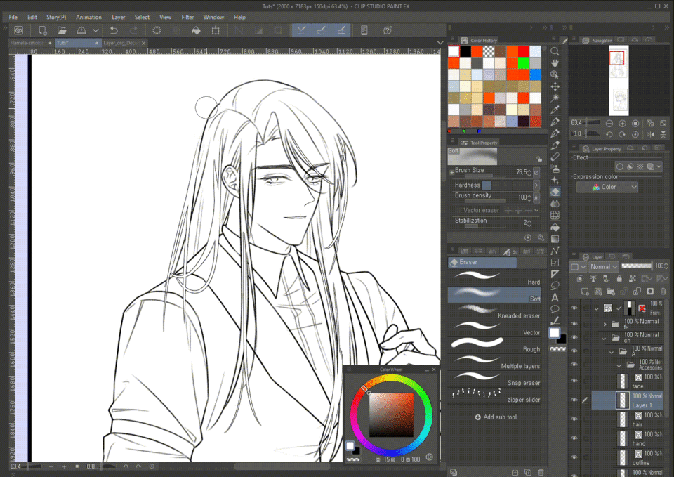 À la dernière étape, nous devons effacer la partie qui devrait être connectée aux cheveux, mais à cause de la bordure, elle semble déconnectée