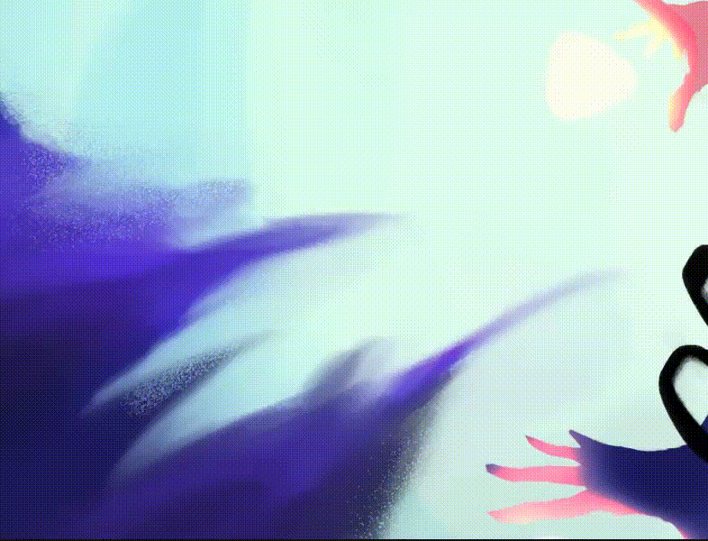 For the smoke, I use the gouache brush for the color base and the blending watercolor brush to stretch the paint to the direction I want. It adds a cool stylised effect to your smoke / clouds