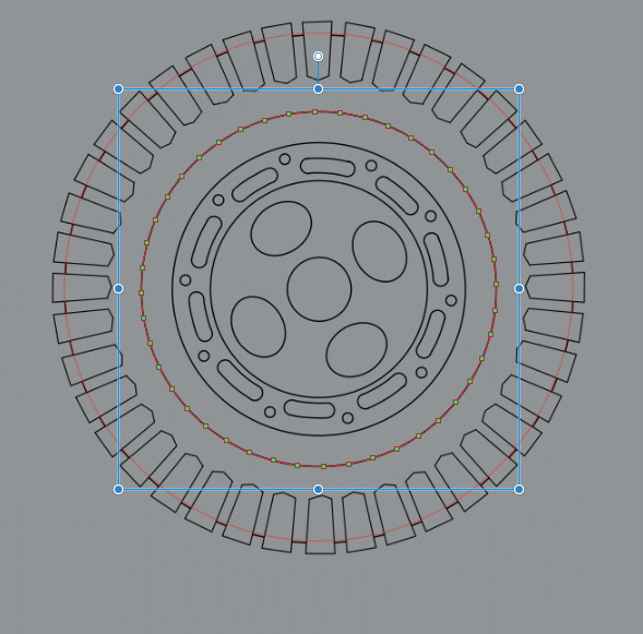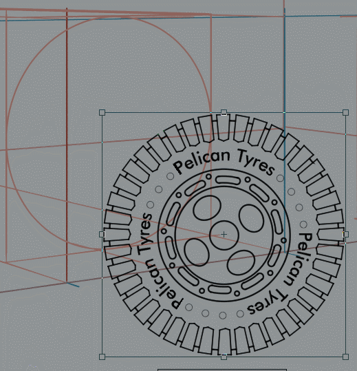 Placer la roue dans la zone de conception est facile, utilisez le cuboïde comme référence et avec l'outil Transformation libre (Ctrl+Maj+T) ou [Fichier] + [Transformer] + [Transformation libre(D)], faites glisser chaque poignée vers le coin correspondant.