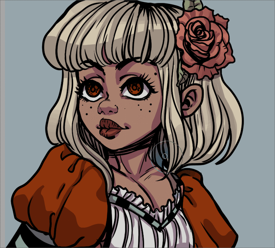 Si vous utilisez vos aplats comme base pour coloriser, il est conseillé d'utiliser des couleurs légèrement plus foncées et moins saturées que ce que vous souhaitez pour le résultat final. Cela vous fera gagner du temps lors des ajustements ultérieurs.