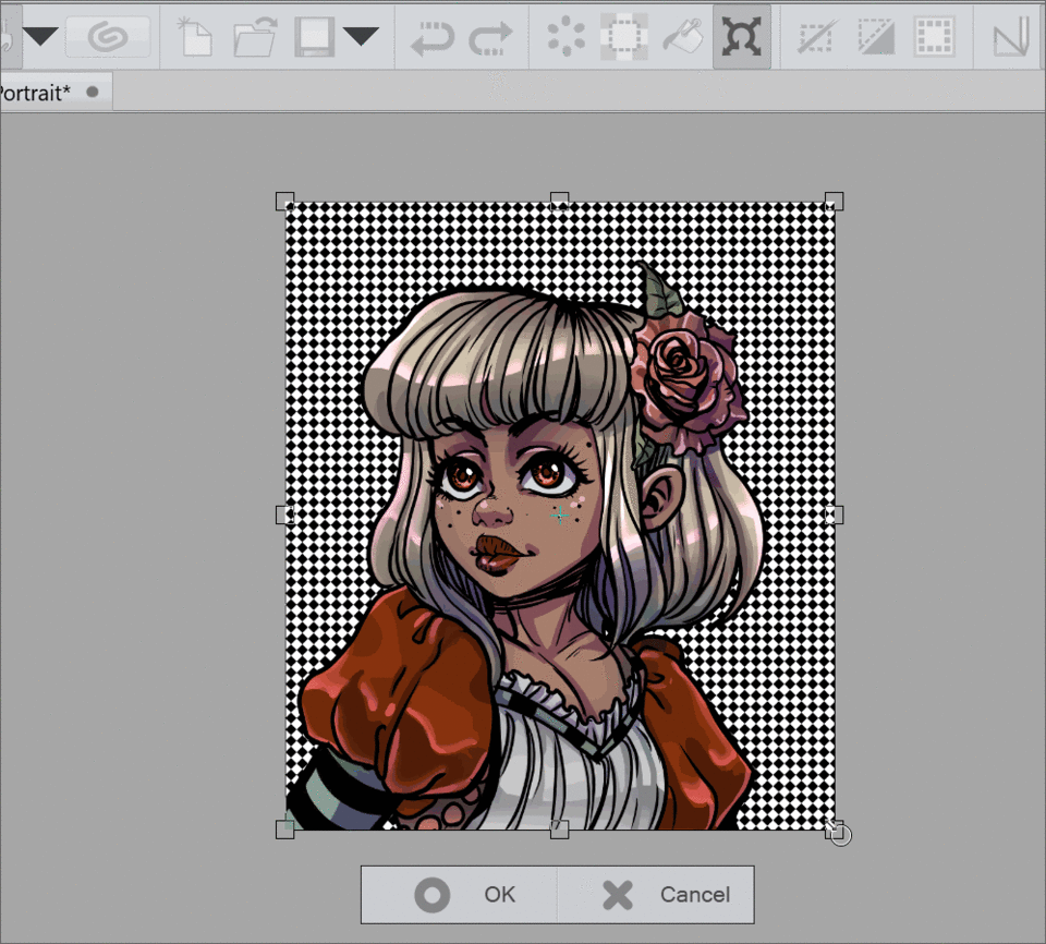 Je clique sur l'icône de transformation et utilise les poignées pour l'agrandir. Je maintiens la touche Maj enfoncée pour que tout reste uniforme et conserve le rapport d'origine.