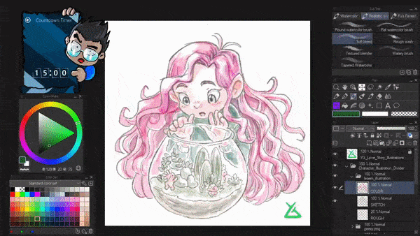 10 minutes de coloration ici juste pour vous montrer à quelle vitesse je peux aller et à quel point cela peut être 'désordonné'. Mais ne pensez pas que c'est un mauvais résultat, c'est juste une pratique utilisant les sous-outils Pinceau Aquarelle Réaliste dans l'idée, le croquis et la couleur dans le même laps de temps. Vous obtiendrez de meilleurs et plus beaux résultats lors de votre prochaine tentative, tout comme je l'ai fait avec le GIF ci-dessous !