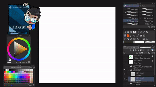 Les 15 premières minutes ont été principalement réalisées avec le 【 Crayon réel 】 et pour la zone plus grande avec le 【 Lavis rugueux 】.