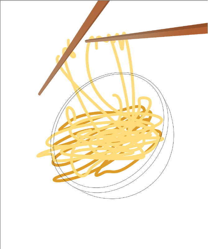 Ensuite, les nouilles, une partie importante de cette illustration. Ce sont toutes des courbes de Bézier avec une taille de pinceau de 15. J'avais 4 calques.