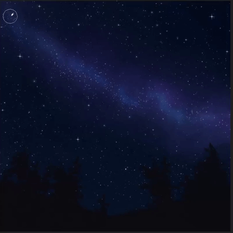 J'ai utilisé un bleu vif saturé pour cela et j'ai défini la position initiale de l'endroit où je voulais que ma galaxie se trouve dans le ciel.