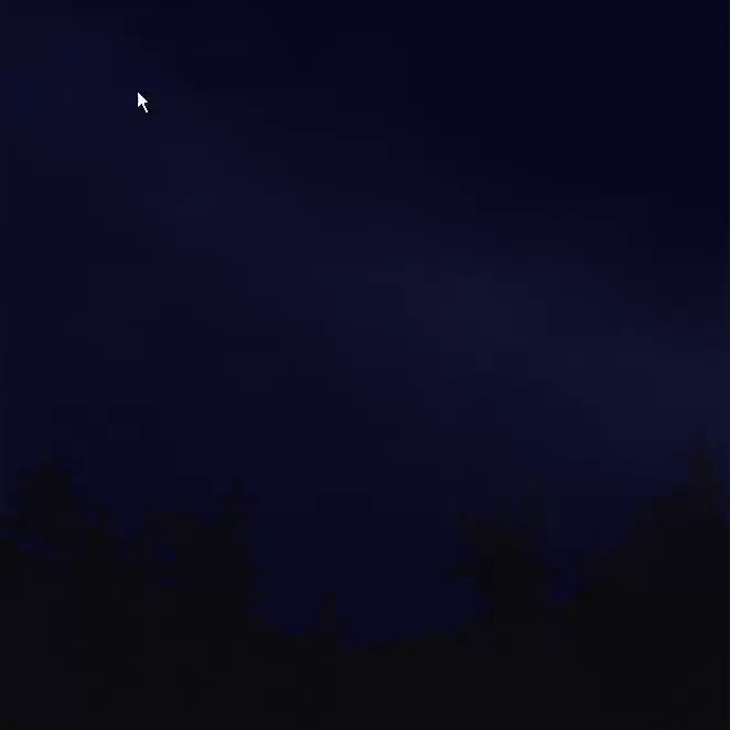 NUIT - Ici, le ciel est un dégradé de violet-bleu foncé, les nuages étant d'un bleu beaucoup plus foncé. Ils sont faiblement éclairés par le haut par un bleu plus clair, car c'est censé être le clair de lune.