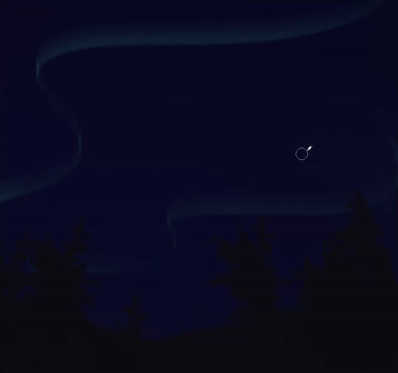 Pour dessiner les aurores, nous devons, encore une fois, prendre en compte les perspectives. Les aurores sont ondulantes par nature et lorsqu'elles sont vues sous un angle d'en bas, elles semblent se fondre dans l'atmosphère.