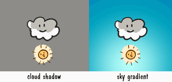 Pour lui donner plus de dimension, appliquez des ombres sur les nuages, un dégradé au ciel et le reflet de la lumière.