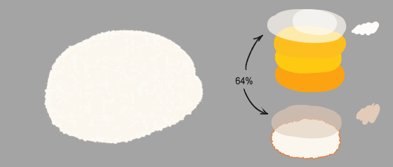 Outils : [Plume(P) -> Saji] pour le blanc ; [Pinceau(B) -> Peinture épaisse -> Pinceau fin] pour les retouches sur le jaune et la brillance, chacun sur des calques individuels. Pour le jaune, vous avez besoin d'une base de couleur solide que vous pouvez obtenir avec [Saji] et, les détails et la brillance, avec de légères touches du [Pinceau fin].