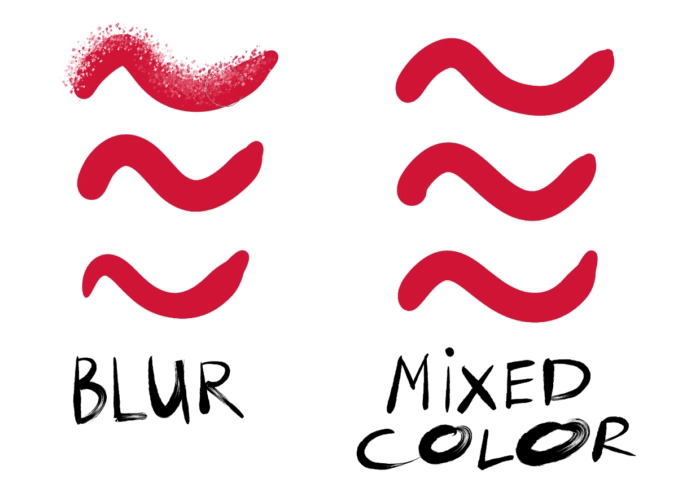 Les pinceaux avec les préférences comme sur la deuxième capture d'écran ne font pas que flouter, mais ajoutent également une touche de la nuance de votre couleur principale choisie.