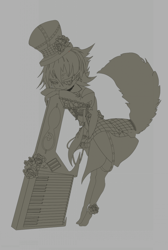Avant de commencer à colorer immédiatement notre trait, je vous recommande de remplir l'image avec une couleur de base et de garder chaque remplissage séparé. Vous devriez utiliser une couleur plus foncée pour cela, car cela réduira les chances de manquer des zones (・ω・)ノ □→■