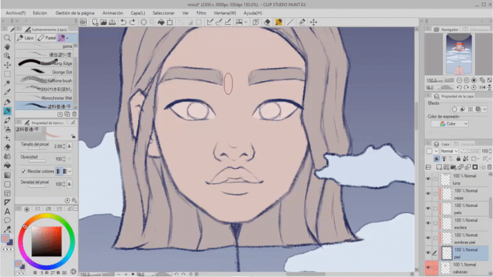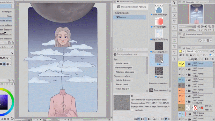 Je l'utilise normalement pour bloquer les différentes parties de mon dessin, par exemple, le visage, la main, la robe, chaque nuage sur une couche différente, ce qui me donne plus de contrôle sur l'œuvre.