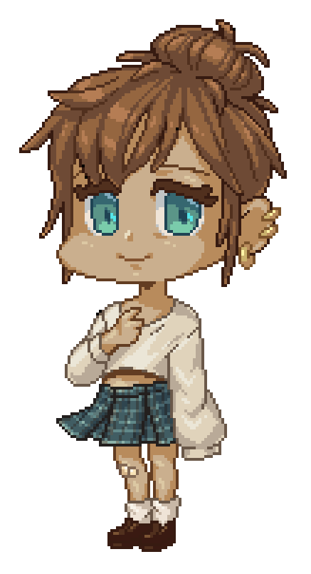 Il a fallu quelques ajustements pour obtenir une longueur de jupe qui, selon moi, fonctionnait le mieux avec les manches volumineuses. C'est pourquoi nous commençons par des ébauches. Imaginez faire tout le travail de pixel art parfait et ombragé, puis seulement réaliser que la jupe et les manches se terminant sur la même ligne horizontale avaient l'air bancales et ne fonctionnaient pas.