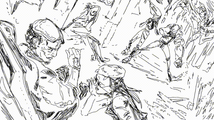 Prenez simplement la liberté d'essayer différentes idées pendant l'esquisse. Vous pouvez toujours faire des allers-retours entre le calque 3D et le calque d'esquisse et ajuster les poses et les proportions des personnages pour améliorer davantage votre histoire.