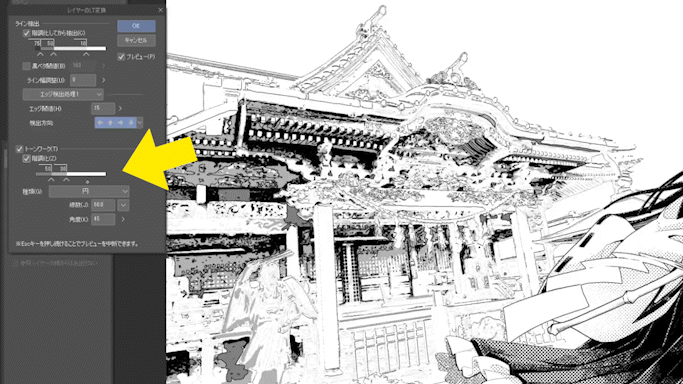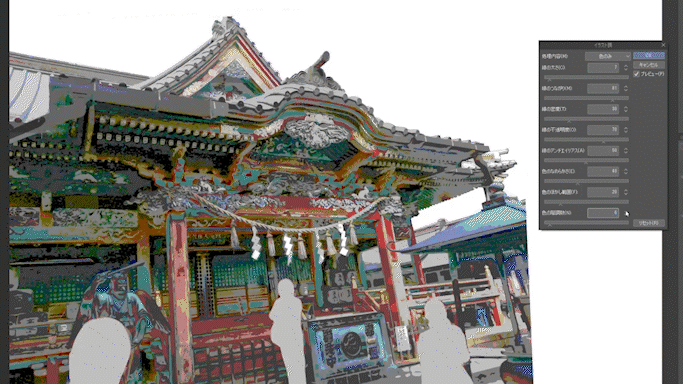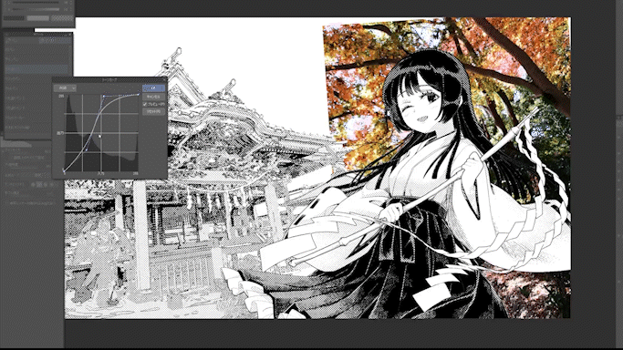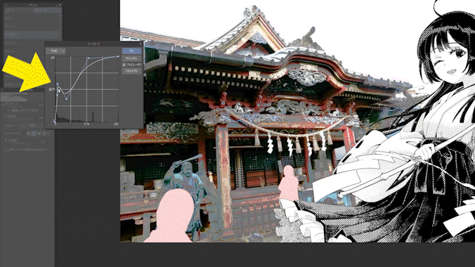 [Préparation à l'extraction du dessin au trait 01] Éclaircir les parties sombres et invisibles du sanctuaire avec la correction tonale