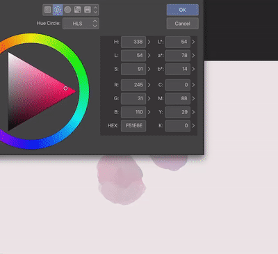 Ce pinceau est très bon pour beaucoup de choses, il est polyvalent et possède un bord aquarelle, que vous pouvez activer et désactiver, selon ce que vous voulez faire. Il mélange doucement les couleurs de premier plan et d'arrière-plan, donc si nous sélectionnons du rouge/rose comme premier plan et du bleu comme couleur d'arrière-plan :
