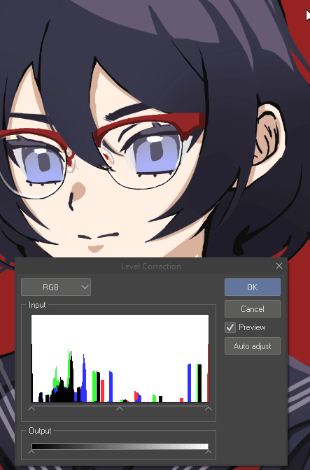 Je ne vais pas expliquer maintenant comment fonctionne la [Correction de niveau]. Mais tout ce que vous avez à faire maintenant est de sélectionner le canal de couleur [RVB] > [Rouge]. Après cela, allez à la sortie en bas de la boîte de dialogue. Vous pouvez voir dans le curseur de sortie ci-dessous que les deux côtés auront de petites flèches de chaque côté. Le curseur gauche représente la sortie des ombres et le côté droit les hautes lumières.
