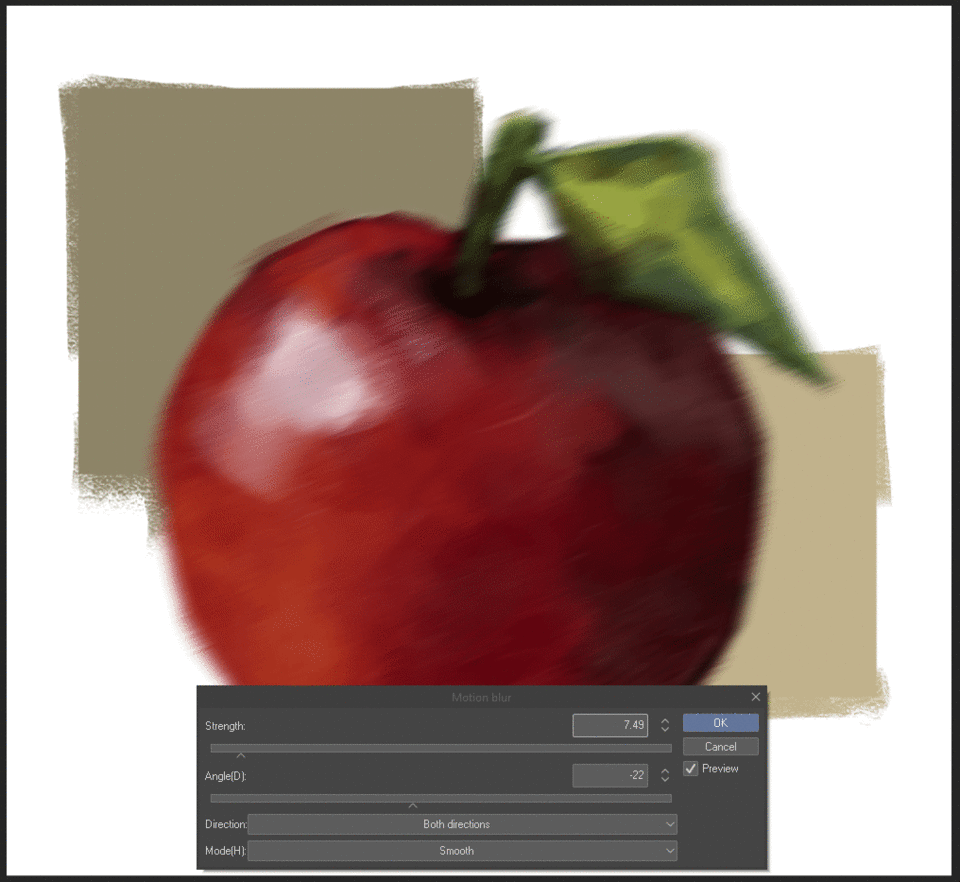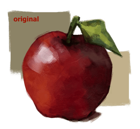 Voici une pomme que j'ai peinte. J'utiliserai cette pomme comme exemple pour chacun des filtres de flou afin de montrer la différence entre eux. Oui, vous verrez cette même pomme pour le reste de cette section, je suis désolé de n'avoir qu'un seul exemple pour vous pour l'instant. Mais ne vous inquiétez pas, une pomme est amplement suffisante.