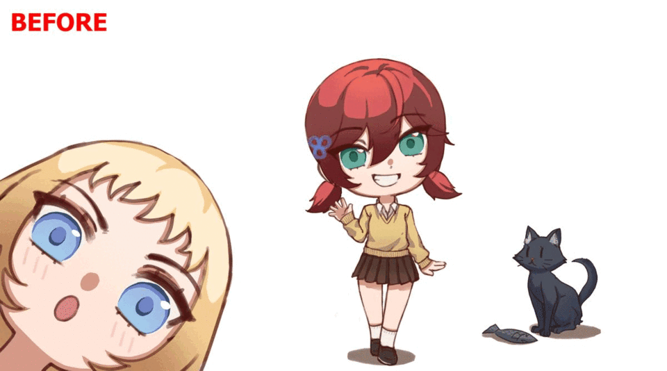 Et maintenant c'est fini ! Voici le GIF avant et après pour voir à quel point ça s'est amélioré depuis le début ! Si vous n'êtes toujours pas satisfait de la couleur de la lueur, vous pouvez essayer d'utiliser la [Correction tonale] pour vous aider avec ce problème. Mais pour l'instant, c'est amplement suffisant pour moi.