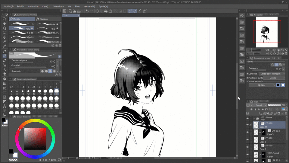Dessiner des cheveux avec des trames prêtes pour l'impression manga !