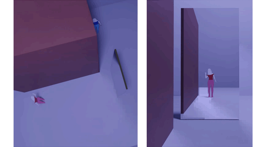 Dans cet exemple, vous serez Miss Rouge, et vous voulez voir Miss Bleu derrière ces murs, en utilisant ce miroir.