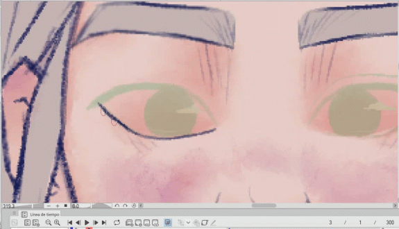 Nous activons le papier oignon pour commencer à dessiner l'œil semi-fermé sur "1a".