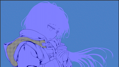 Après avoir rempli grossièrement, sélectionnez les trames du manteau et effacez les parties qui débordent sur le manteau.