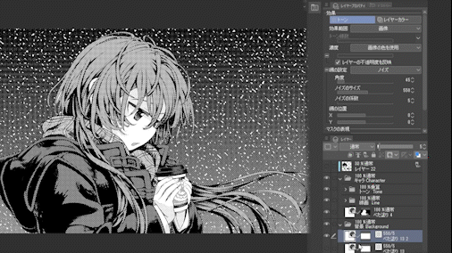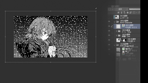 Cette fois, je vais vous expliquer en détail comment appliquer rapidement et facilement les trames de base pour les mangas. Nous verrons d'abord comment appliquer des trames sur des personnages de base, puis, en application aux arrière-plans, comment dessiner de la neige avec des trames.