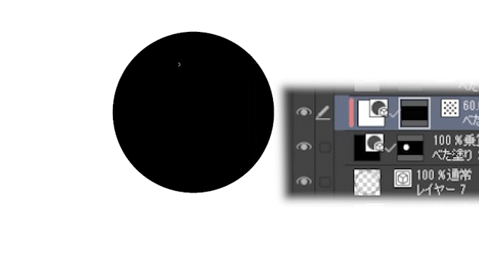 En définissant le mode de fusion du calque de trame à gratter sur [Multiplier], puis en créant un calque de remplissage blanc au-dessus, en réduisant son opacité pour le tramifier et en l'écrêtant, vous pouvez dessiner comme si vous grattiez tout en conservant le calque d'origine.