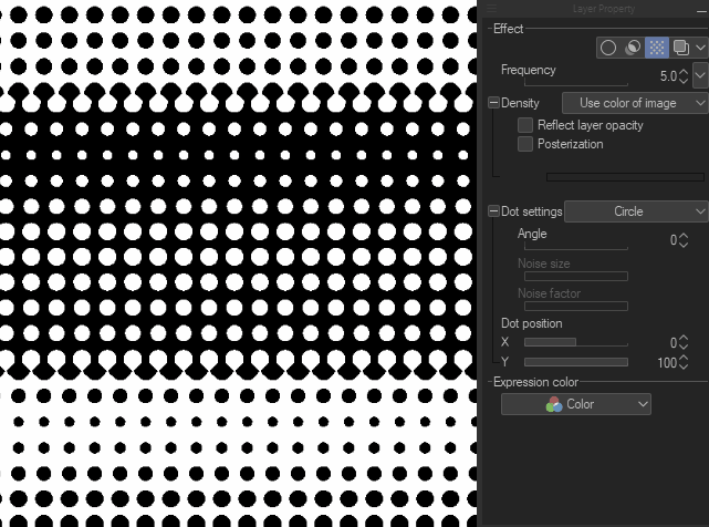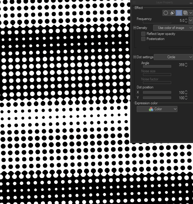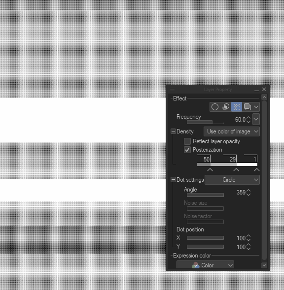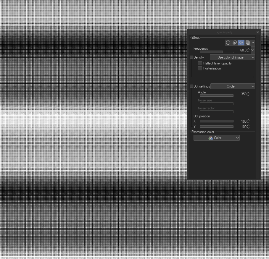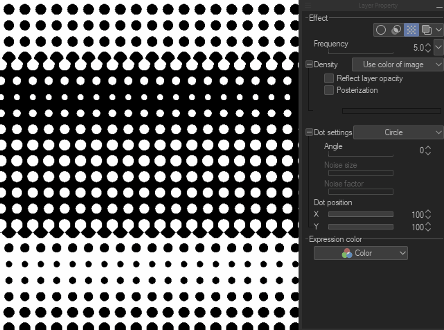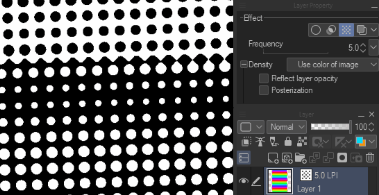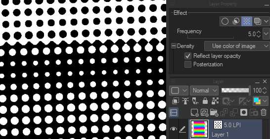 Cela permet d'ajuster la densité de la trame avec l'opacité du calque.