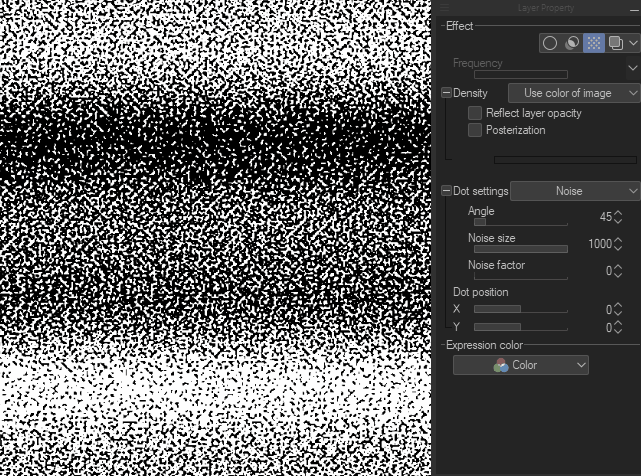 Lorsque vous définissez le type de point sur bruit, les options taille du bruit et facteur de bruit deviennent disponibles.
