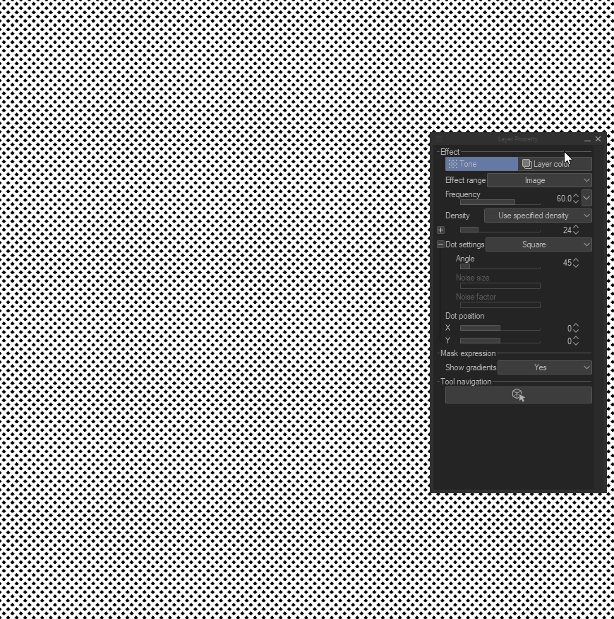 La deuxième façon de créer des trames est via la palette Propriétés du calque