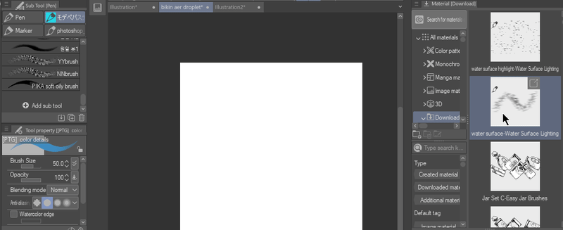 Après le téléchargement, allez dans la section de téléchargement et déplacez les pinceaux de matériau vers votre sous-outil en les faisant glisser