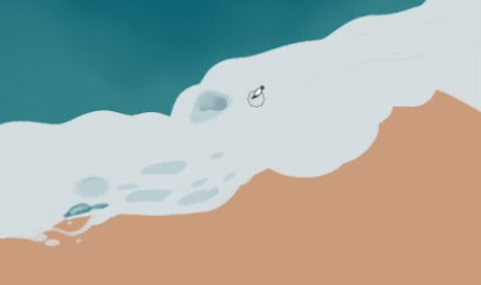 L'écume est également ajoutée sur l'eau pour créer une illusion de vagues en mouvement.