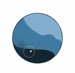 La bulle suivante est la même, mais nous utilisons l'outil d'estompage pour obtenir la couleur intermédiaire entre le « blanc » et le « bleu foncé » pour un aspect plus naturel de cette manière. Nous continuerons à créer des bulles aux formes ovales, petites et grandes, et à estomper la couleur jusqu'à ce qu'elles s'intègrent à l'écume.