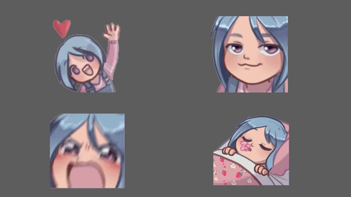 Comme exemples pour ce tutoriel, j'utiliserai 4 de mes emotes pour réaliser différentes animations :