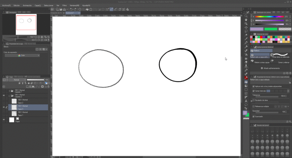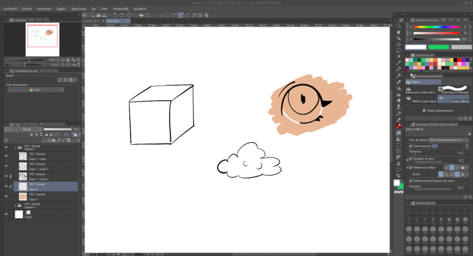 Cette propriété gère le remplissage en fonction de l'opacité des pixels. Si nous utilisons des pinceaux translucides ou avec beaucoup de texture de type crayon, il est possible qu'il ne remplisse pas bien et que des espaces blancs subsistent ou qu'il déborde du line art.